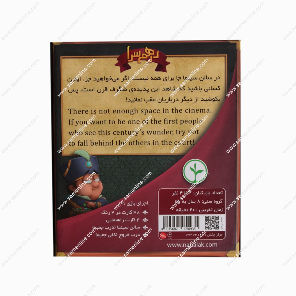 - شاه بابا به تازگی از فرنگ برگشته و با خودش یک دستگاه سینماتوگراف آورده است، به میمنت این کار همه ی درباریان را دعوت کرده تاد تشریف بیاورند و شاهد این پدیده باشند. اما سالن کوچک است و جای این همه مشتاق را ندارد. هر بار صف پنج نفر می شود، دو نفر اول را به سالن راه می دهد و آخرین نفر را به درب خروج هدایت می کند. بازیکنی که بیشترین افراد خودش را وارد سالن کند، برنده است.
